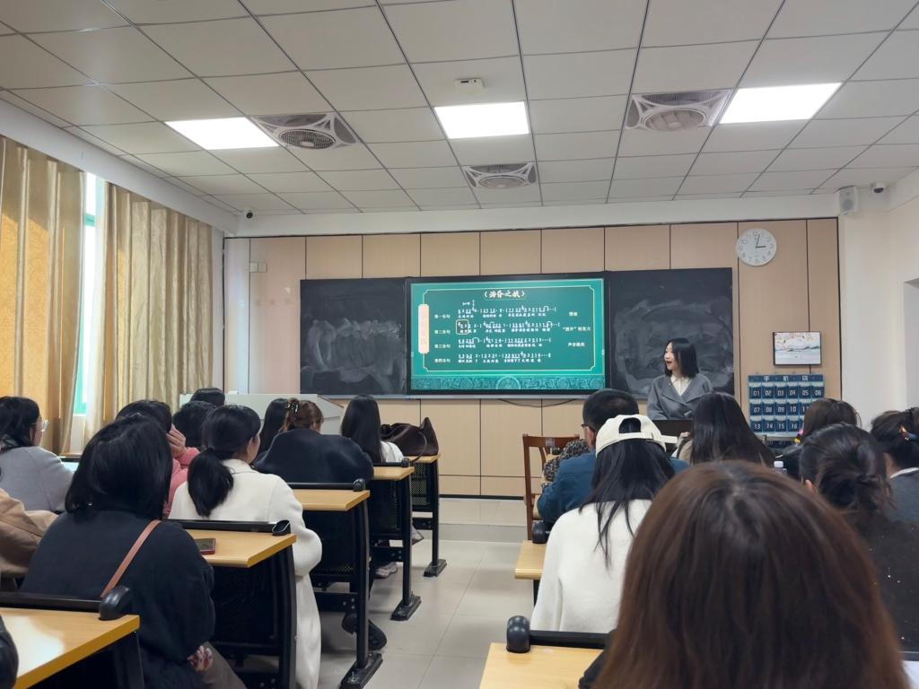 授课教师团队打破传统音乐鉴赏课的单一授课模式,精选多首风格迥异的经典作品,创新性融入舞蹈、钢琴演奏、实景视频等多元教学元素,让课堂更具层次感与感染力。教学中,团队紧扣作品的文化底蕴与艺术特质,通过情境创设、现场演绎、视听融合等灵活多样的教学方法,将民族文化、历史内涵与音乐艺术深度衔接,既彰显了传统音乐的独特魅力,又展现了跨维度教学创新的鲜明特色。整场示范课环节设计精巧、教学功底扎实,充分体现了获奖教师团队的创新教学理念,听课教师全程专注投入、认真记录亮点,青年教师更是积极梳理可借鉴的教学思路。